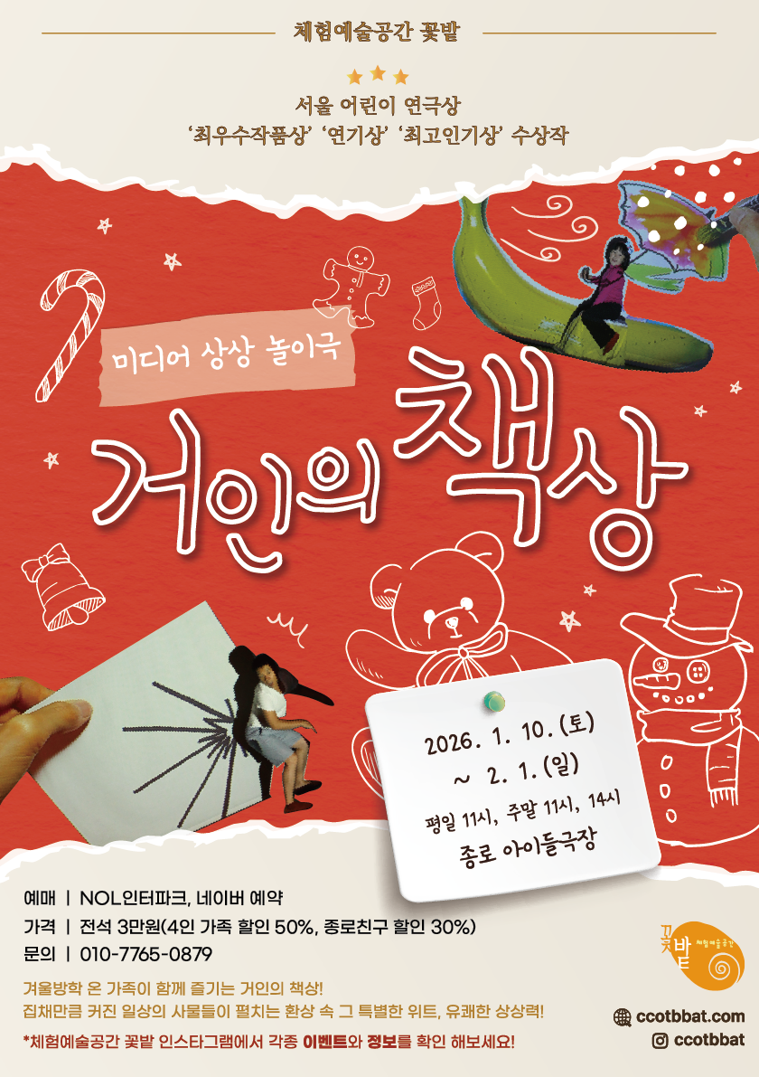 미디어상상놀이극 <거인의 책상>은 미디어영상장비를 이용하여 조그만 일상의 책상을 거대한 거인의 책상으로 만들어 놓는다. 책상 위에서 실시간으로 움직이는 손들과 그림 그리는 행위, 일상의 사물들이 거대하게 확대되고, 그 거인의 책상 위로 배우와 관객이 뛰어 올라 황당한 환상의 체험을 한다. 공연관람과 함께 관객이 직접 참여하는 체험공연을 통해 상상은 눈앞의 현실이 되고, 우리는 거인의 책상 위에서 우리가 꿈꾸었던 환상의 여행을 떠난다.