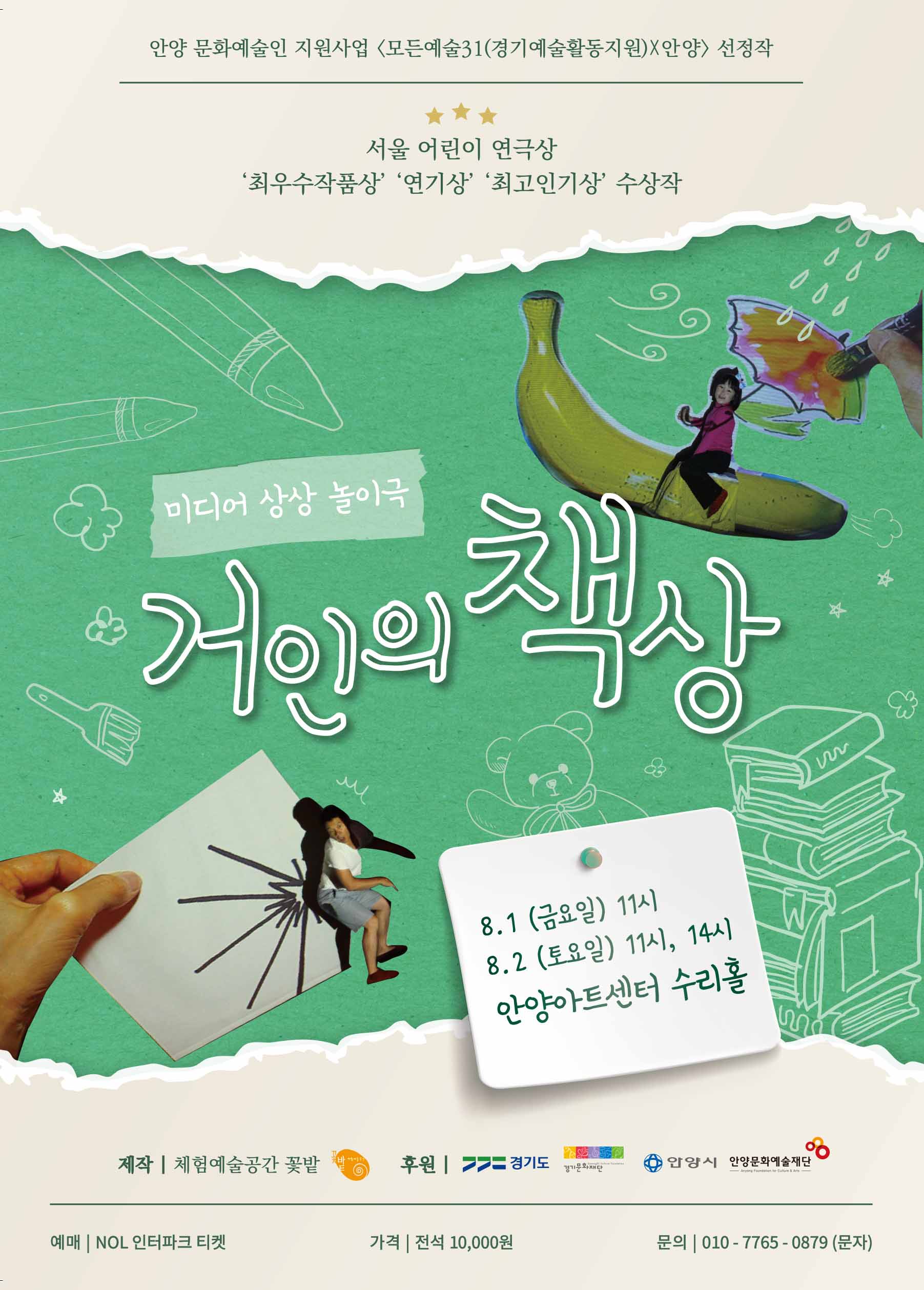 미디어상상놀이극 <거인의 책상>은 미디어영상장비를 이용하여 조그만 일상의 책상을 거대한 거인의 책상으로 만들어 놓는다. 책상 위에서 실시간으로 움직이는 손들과 그림 그리는 행위, 일상의 사물들이 거대하게 확대되고, 그 거인의 책상 위로 배우와 관객이 뛰어 올라 황당한 환상의 체험을 한다. 공연관람과 함께 관객이 직접 참여하는 체험공연을 통해 상상은 눈앞의 현실이 되고, 우리는 거인의 책상 위에서 우리가 꿈꾸었던 환상의 여행을 떠난다.